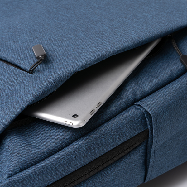 Σακίδιο πλάτης από 600D RPET με στικτό φινίρισμα. Μεγάλη εσωτερική θήκη με τσέπη για φορητό υπολογιστή 15». Εξωτερική τσέπη με φερμουάρ και πλαϊνή τσέπη. Επενδυμένες χειρολαβές. Ιμάντας για καροτσάκι. Χωρητικότητα 14L.
